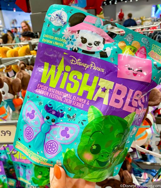 If drinkware isn’t your thing and you’re looking to snuggle with a lil’ something, the Flower & Garden Wishables are coming back! The blind bags feature Figment Topiary, Butterfly, Minnie, or Fruishi Wishables.