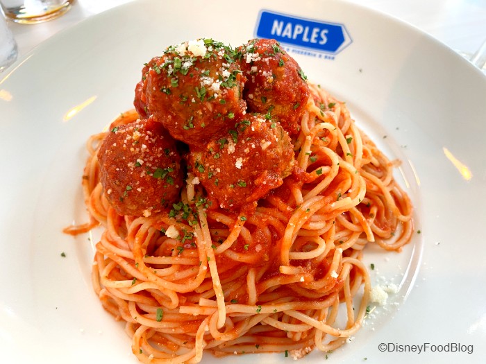 Naples is offering a limited menu, and we received a paper menu when seated. Despite the slimmed down offerings, Italian classics such as Spaghetti Meat Balls, Cheese Ravioli, and a Calamari Fritti appetizer were available.