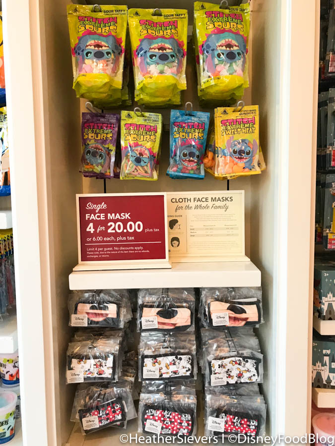 They had plenty of Stitch Extreme Sours in stock and were also selling Disney cloth face masks which we’ve seen online and at Disney World before.