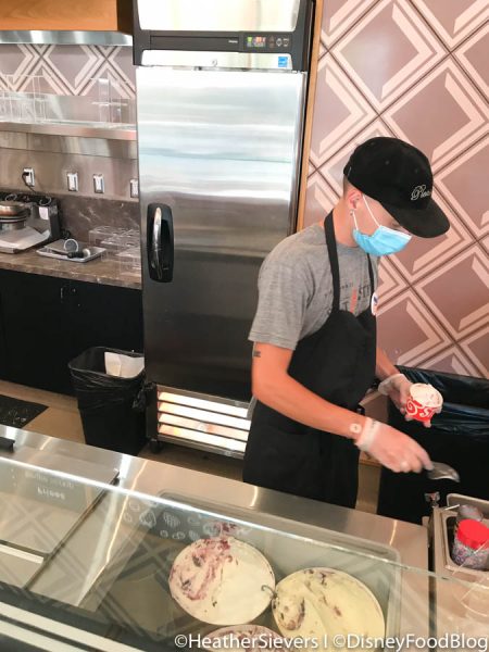 In fact, Marceline’s Confectionery was busy enough for Cast Members to utilize its virtual queue to keep a crowd from forming outside. We put in our name and number and roamed around Downtown Disney until we were notified to return to the entrance. There was also the option to wait in a standby socially distanced line.