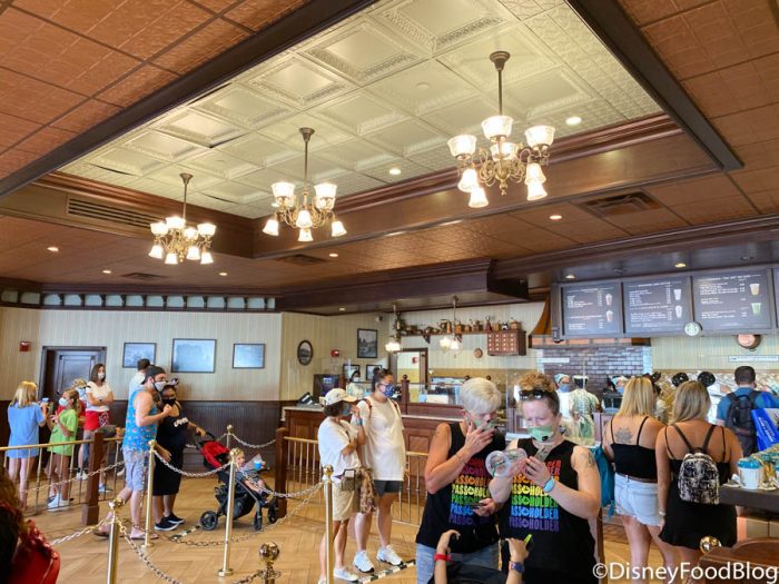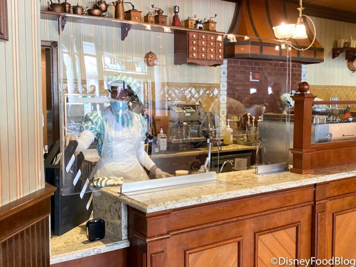 The pickup window also has a new plexiglass barrier. A Cast Member will call your name when your drink is ready and you can approach the counter.