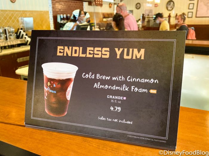 And what have we here? A new specialty cold brew drink! It’s called the Endless Yum and it features Starbucks’ signature cold brew topped with a cinnamon almondmilk foam! Sounds pretty yummy to us!