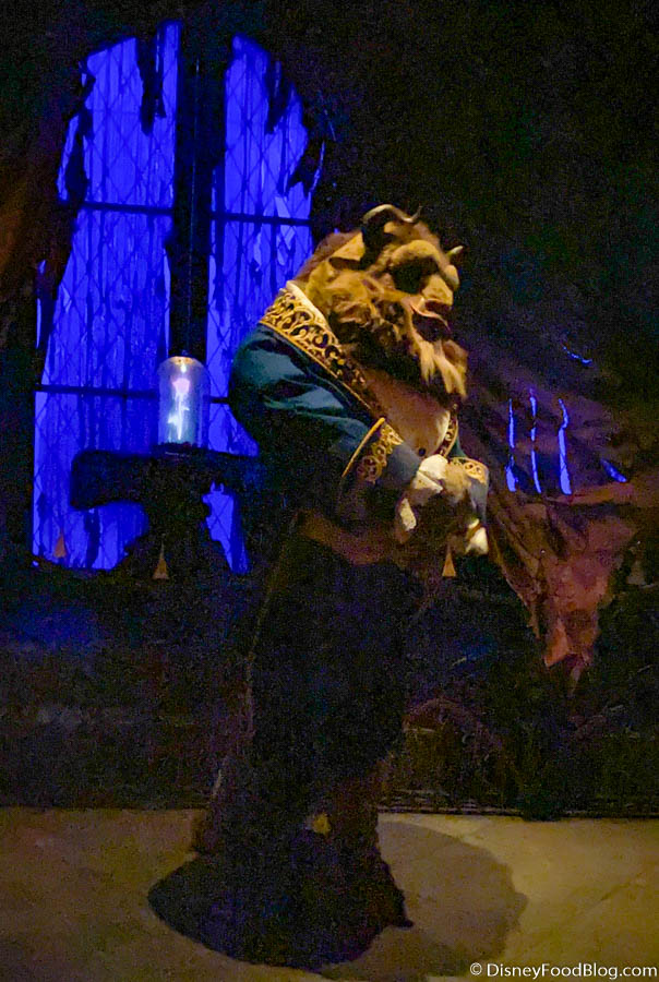 But we’ll talk about food AFTER WE TELL YOU THE BIG NEWS! We actually got to see a character (and a pretty darn rare one at that) while we were here! Though it was not previously announced that Be Our Guest would have a modified character experience, we got to wave at Beast while we ate! Sure enough, our big buddy wandered the restaurant about every 30 minutes or so throughout our meal. You can’t see him at ANY other character experience (before OR after closures!), so this is a huge deal for your Beauty and the Beast fans.
