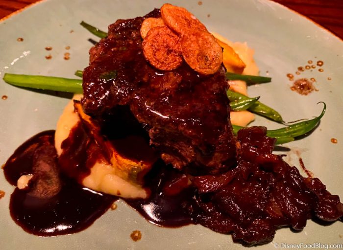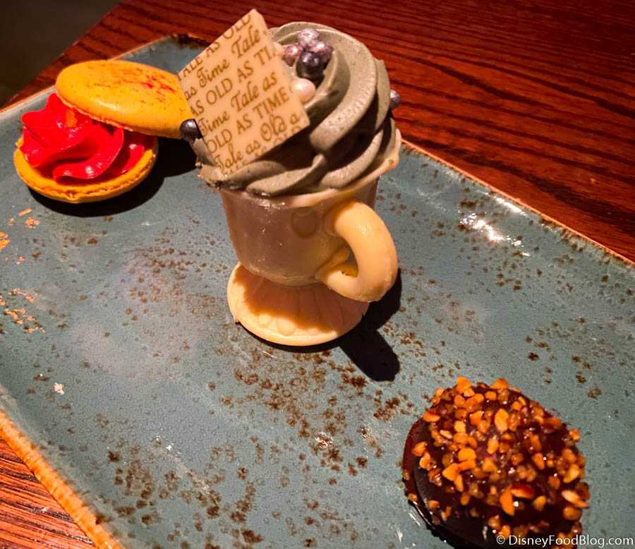 Here’s how it went down: after a fanfare and introduction, the Beast walks throughout the dining rooms and tables in the restaurant, waving at guests and bowing. He didn’t pause for selfies like we’ve seen our Disney pals do in other modified meals like Topolino’s Terrace, but it was still a treat to have him here.