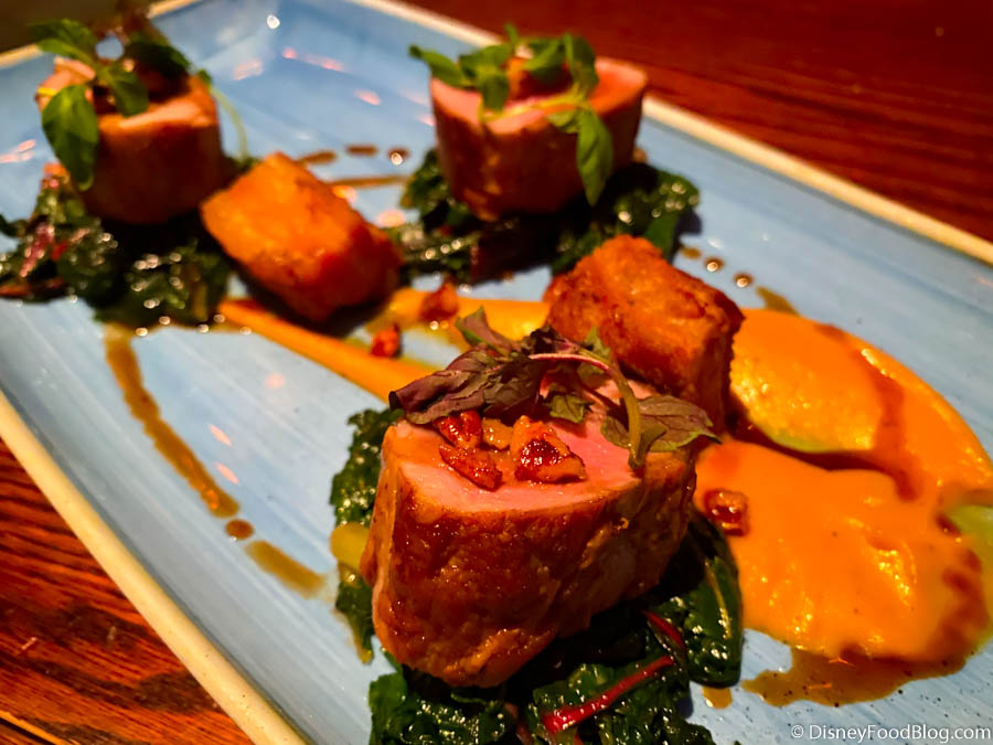The pork belly was awesome…but the tenderloin was tough and pretty meh on flavor. The sweet potato puree was silky and gorgeous — so much flavor and very well done.