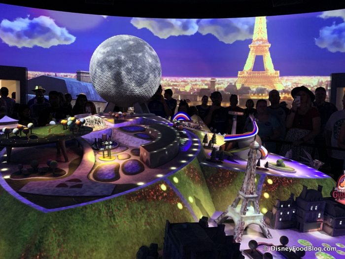 Since we rode the Skyliner in over World Showcase, we got a glimpse of construction in the France Pavilion. We’re excited to ride Remy’s Ratatouille Adventure when it opens!