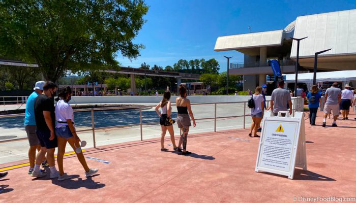 Since this is the Cast Member preview, we were checked in using a tablet instead of the usual system. The gate area had plenty of distancing stickers as well.