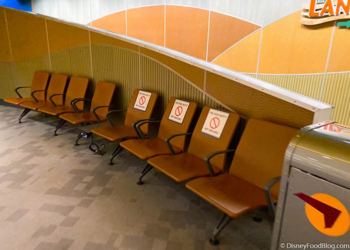 The Soarin’ Around the World queue has been extended into the seating area nearby to allow for social distancing.
