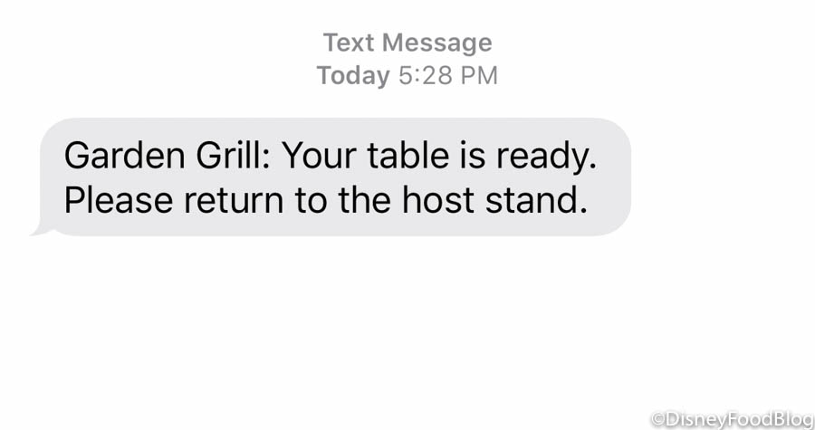 You’ll receive a text message when its time to dine!