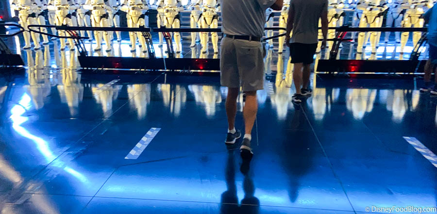 These are so you get a chance to pause and take pictures while still giving others their space. When you load into the actual ride vehicles, it’s one party per vehicle. And yes, it IS scary if you ride alone. Kylo Ren is coming for YOU! 🙂