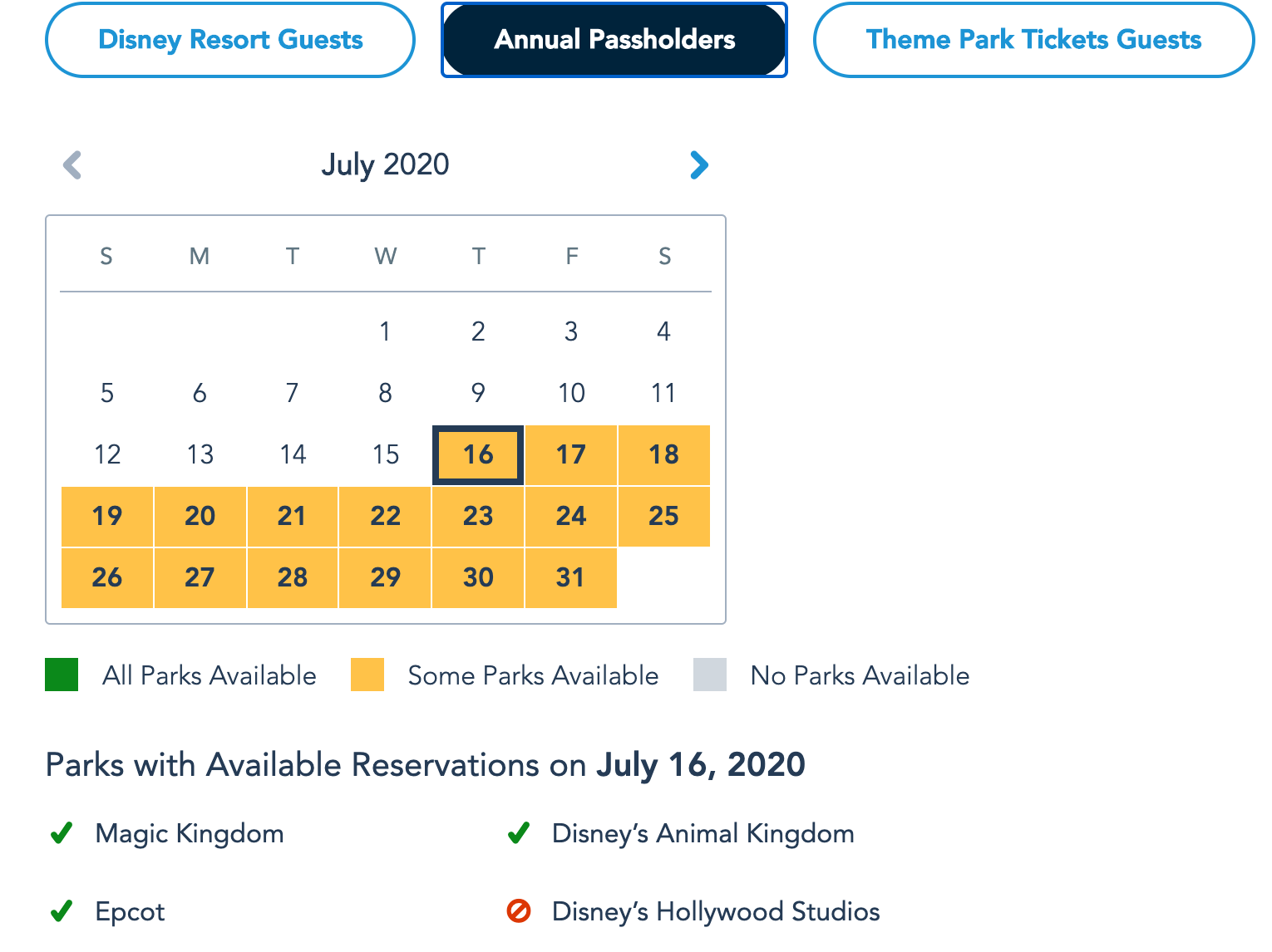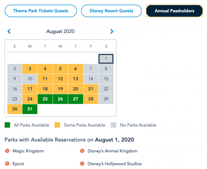 Just a few days ago, there was NO availability for Passholders in July — that means no chance of getting into ANY park on ANY day. August had some options still, but days (especially weekends) were going quick.