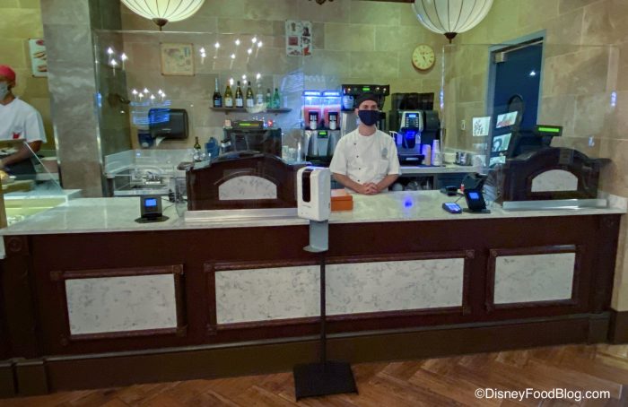 The cast members were wearing masks for the safety of the guests and those around them, and were ready to help guests pick out the perfect French meal.