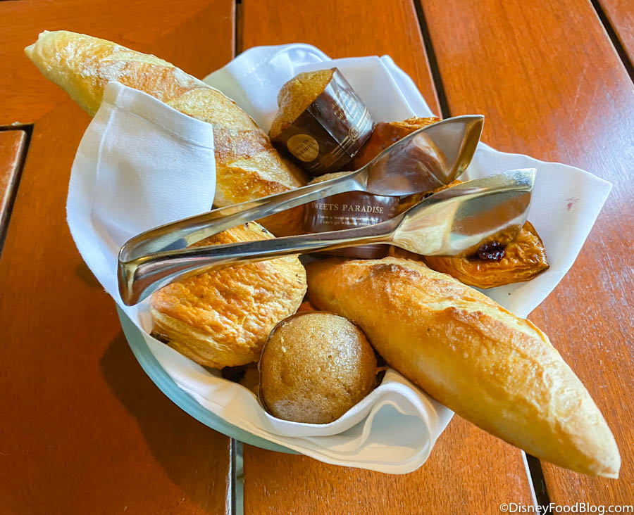 The bakery basket and sliced fruit are included with every meal.