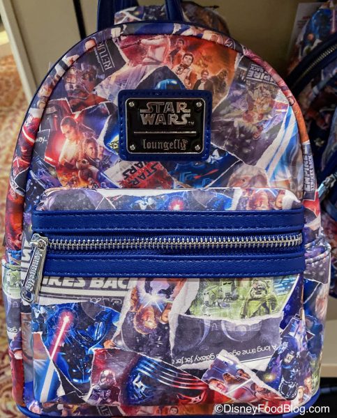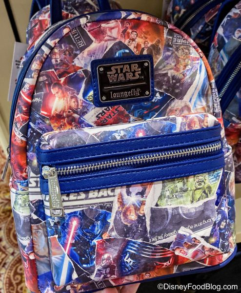 This mini Loungefly bag features posters from the Star Wars movies in a really neat collage style. Also, can we just admire the adorable Ewok featured on this bag?!