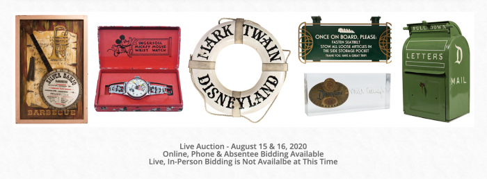 Van Eaton Galleries is hosting a live auction for different merchandise, memorabilia, and souvenirs from the past 65 years in Disneyland. The live auction will take place on August 15th and August 16th with online, phone, and absentee bidding available too!