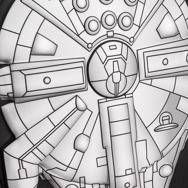 The adorable new backpack features “the fastest hunk of junk in the galaxy” on its front side. We love how some of the parts on the top of the infamous starship have a three-dimensional look to them!