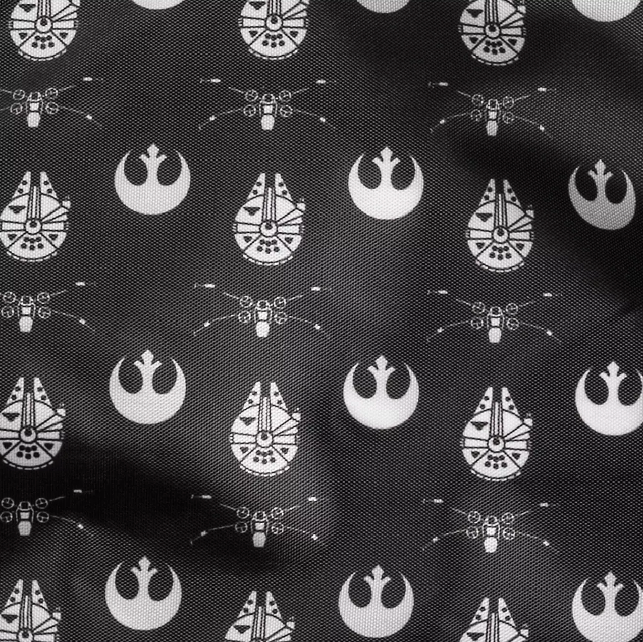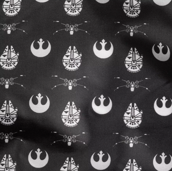 And we love the fabric that lines the inside of the bag — it’s got little Millennium Falcons, X-Wings, and Rebel Alliance symbols all over it!