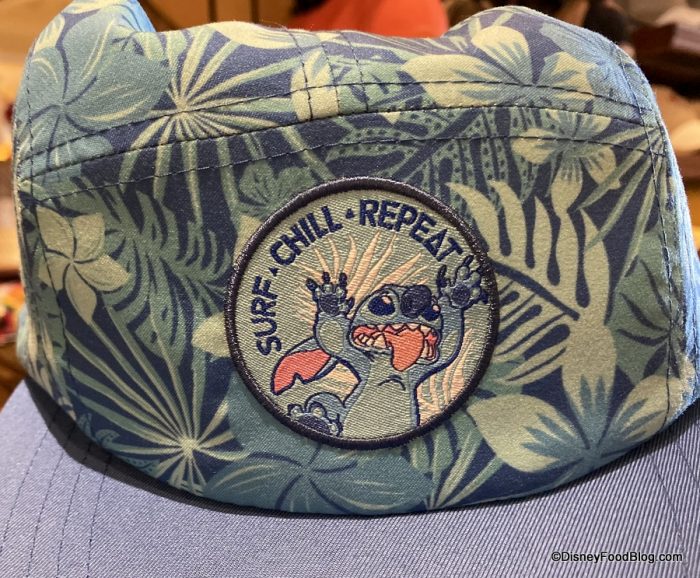 Stitch is giving out some life advice on this cap which recommends that you: SURF, CHILL, and REPEAT.