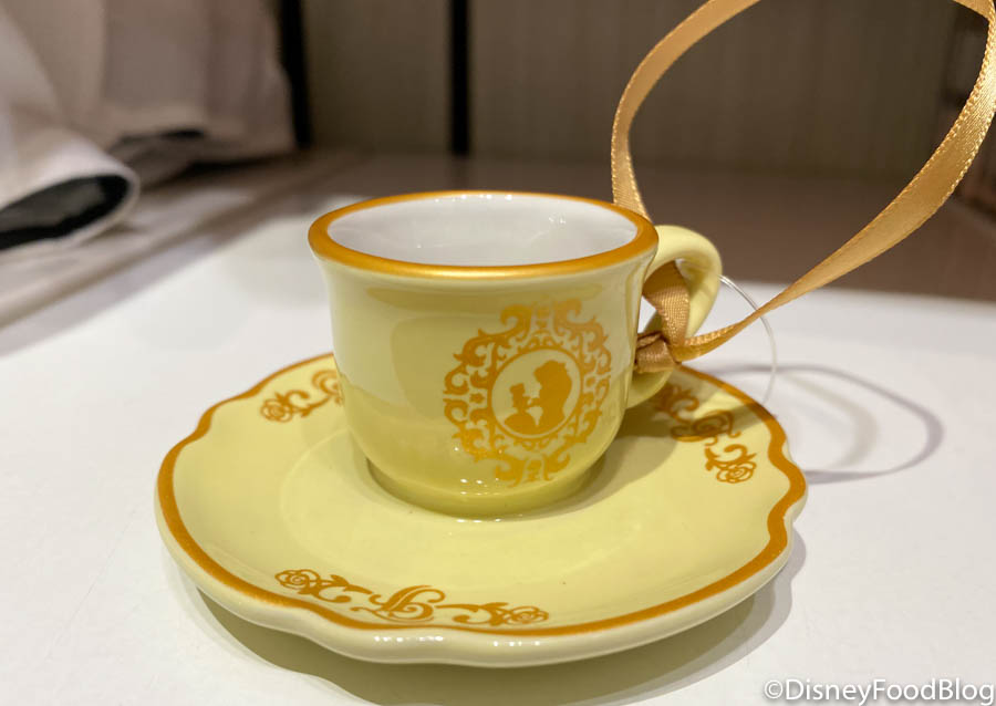 The other side of the ornament features Belle and the Beast, of course! We also love how the yellow color of the cup and saucer resembles the gold hue of Belle’s signature gown!