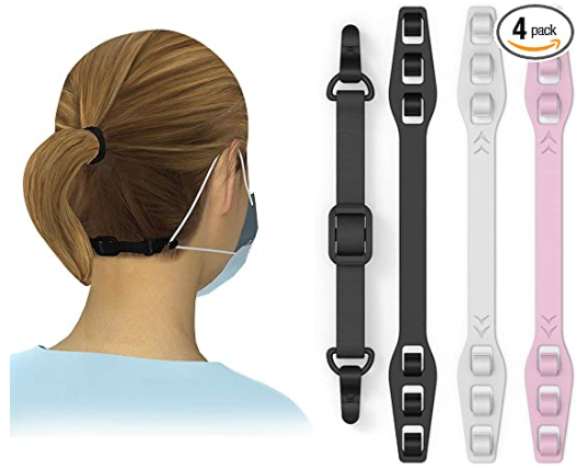 You can spot these hooks all over Amazon right now. Essentially they help to alleviate pressure on your ears AND they make it possible to adjust your mask to the most comfortable fit. That’s two birds with one stone! This could be a great solution for loose-fitting masks for kids too!