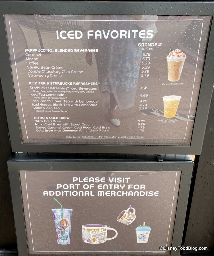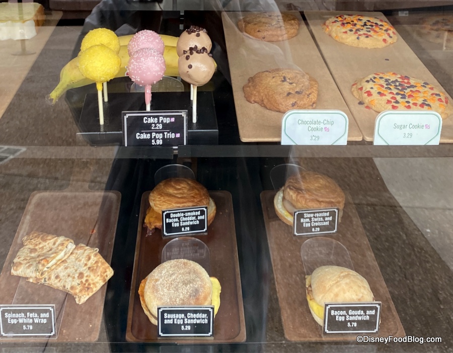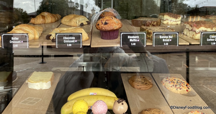 Though the selection is smaller than the Starbucks locations in the other parks (The Trolley Car Café in Disney’s Hollywood Studios, Main Street Bakery in Magic Kingdom, and Creature Comforts in Animal Kingdom), there is still an assortment of pastries available including Cake Pops, Iced Lemon Pound Cake, and more.