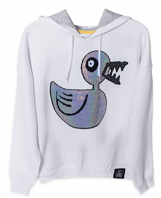 Grab this Nightmare Before Christmas Undead Duck Reversible Sequin Pullover Hoodie for Adults by clicking here!