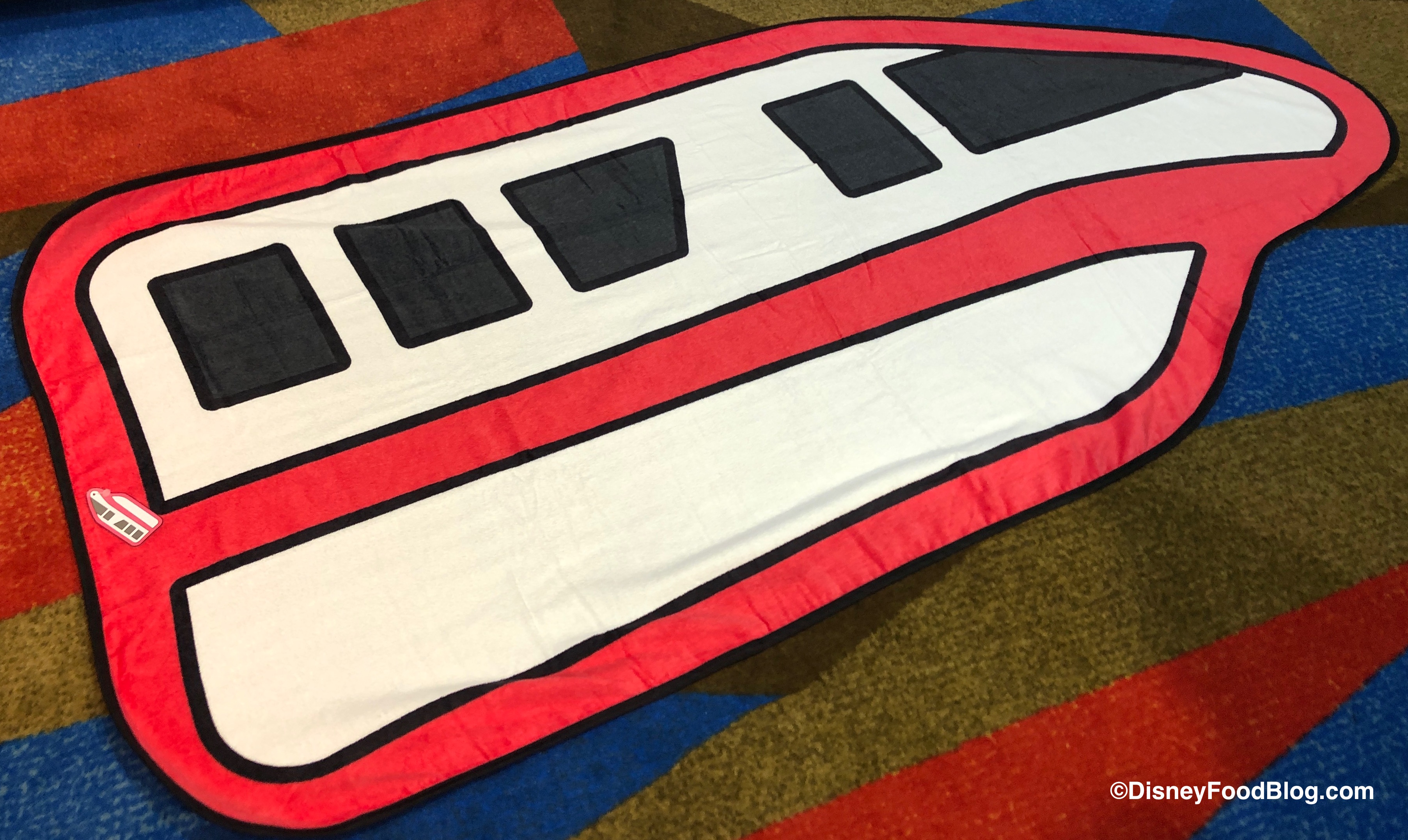 And we were treated to a fun surprise when we unfolded it to get a closer look — the tag actually shows us the shape of the towel! That’s right, the towel is shaped like the Monorail!