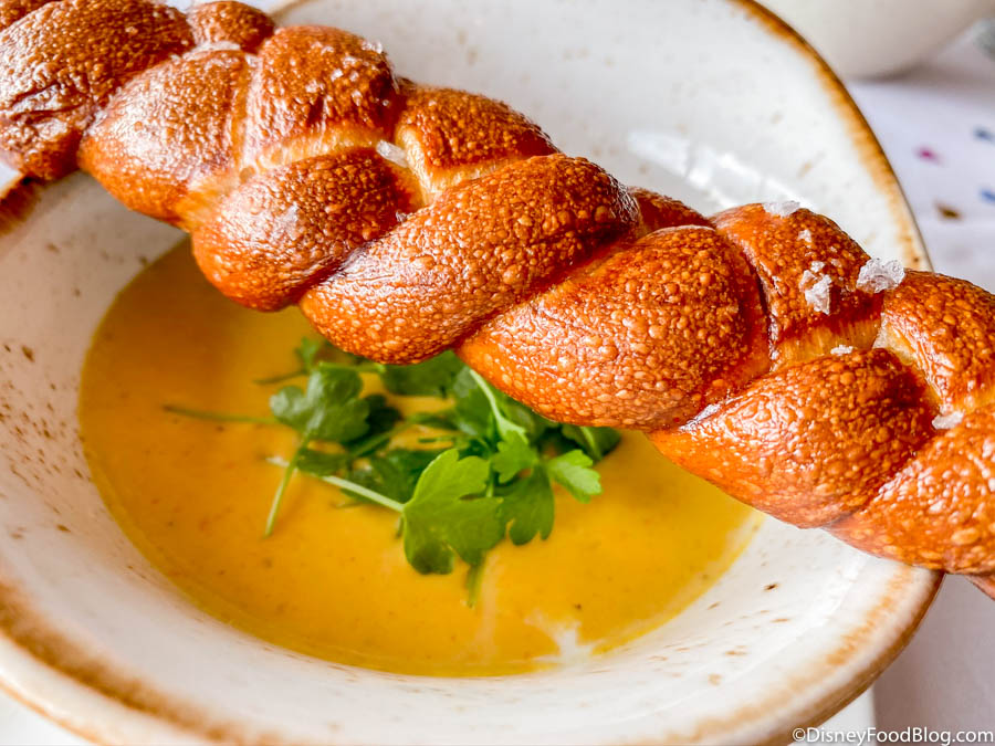 The soup is served with a gorgeous hand-braided pretzel that really reminded us of Auntie Anne’s in its texture and flavor! Yum!