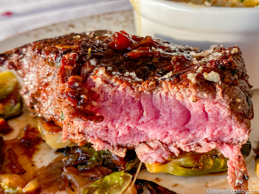 Next up: the Grilled Pork Tenderloin. This is a classic dish from California Grill and is usually really well made. The pork is marinated with a Zinfandel glaze and nestled on top of goat cheese polenta, mushrooms, kalettes, bacon, and dried cherries.