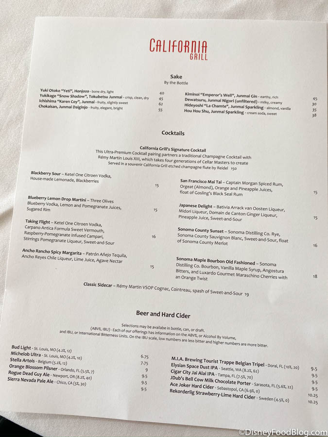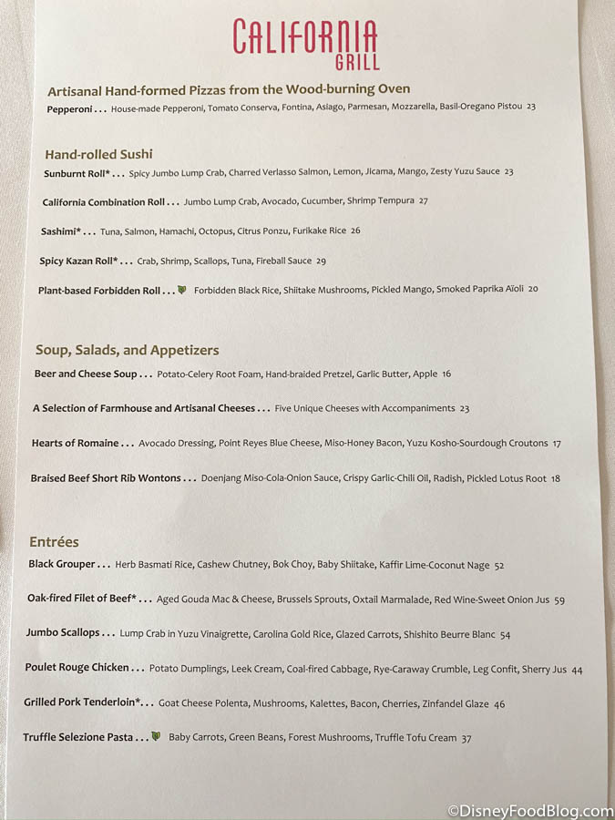 It’s good to note that California Grill’s signature hand-rolled sushi is very much STILL available. A variety of freshly prepared rolls are available to guests, but it does seem limited from offerings we’ve seen from this spot in the past. If a favorite is missing from the menu, ask your server if the sushi chef can accommodate you!