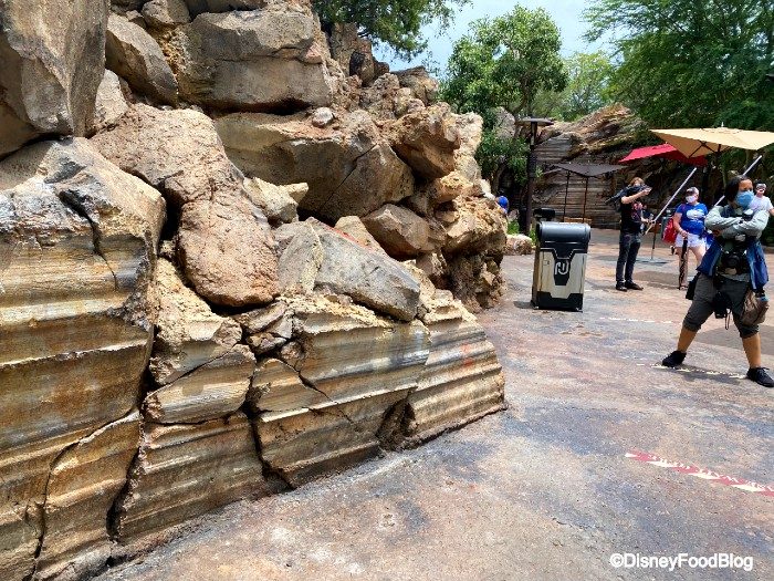 Today, we heard rumblings that there was a new Photopass Magic Shot opportunity in Star Wars: Galaxy’s Edge featuring Baby Yoda. After asking the citizens of Batuu about a certain Child, we were pointed to a rock wall near the Droid Depot.