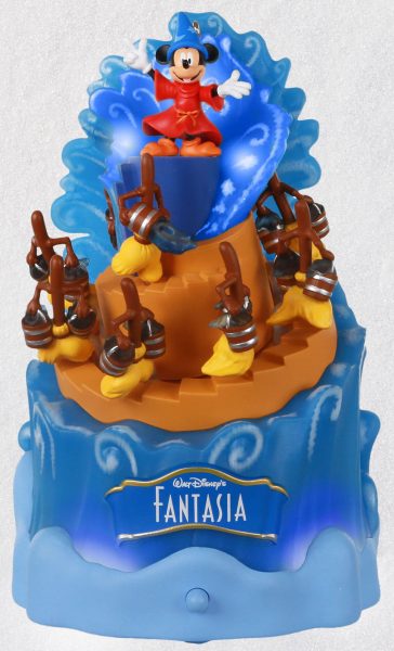 First up — it’s time to put on your sorcerer hat and start directing those brooms with this Disney Fantasia 80th Anniversary Musical Ornament With Light and Motion! This ornament features Sorcerer Mickey atop an elevated platform, surrounded by beautiful blue waves of water being carried and splashed around him by the enchanted brooms!