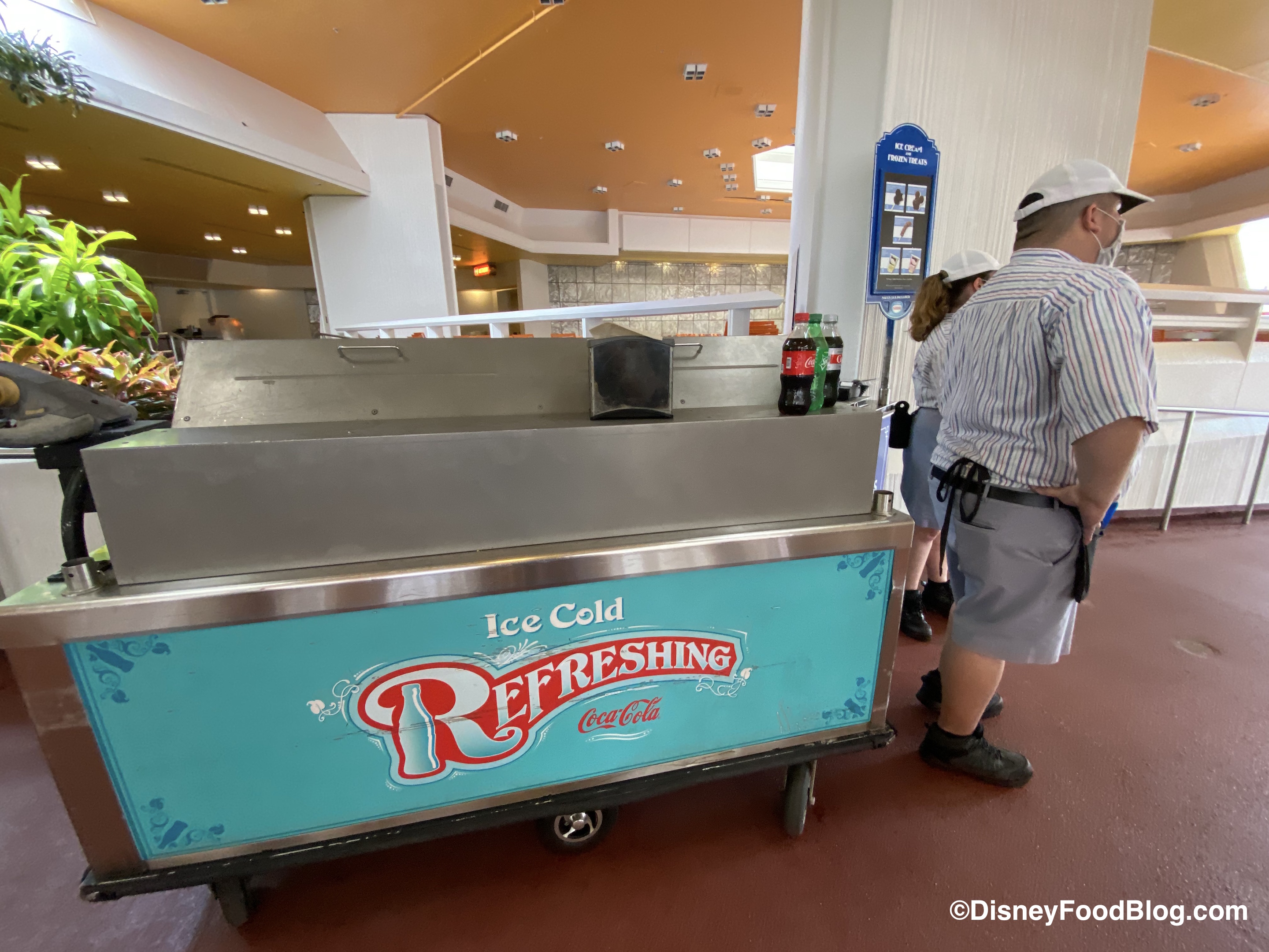 We noticed that there is a snack cart set up by the Tomorrowland Relaxation Station so guests can buy bottled beverages and ice cream!