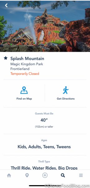 The Walt Disney World attraction will soon be transformed into a Princess and the Frog ride. Since the announcement, fans have been flocking to the Briar Patch gift shop to pick up Splash Mountain merchandise. We don’t know when the ride will be shut down for refurbishment or how long it will take for the ride to reopen once construction begins. We noticed something interesting while perusing the My Disney Experience app today!