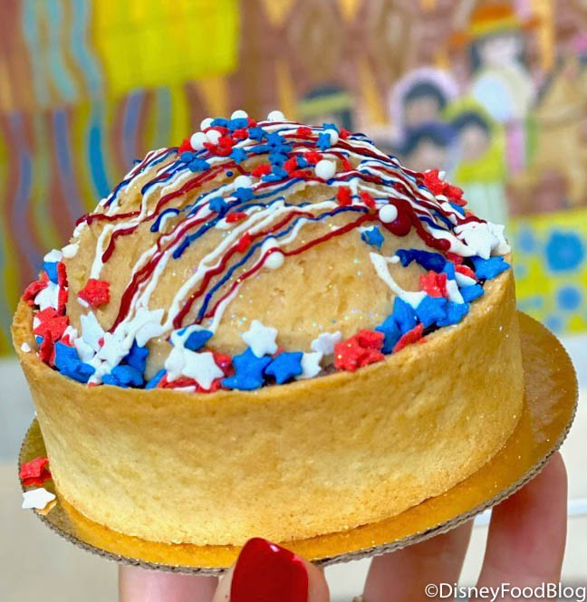 And who can forget this year’s Peanut Butter 4th of July Pie from Contempo Cafe? Yes, this is our long-standing FAV-OR-ITE tiny pie in all of Disney World (ever, forever) with a little makeover to celebrate America’s b-day! This epic PB tiny pie is in the bakery case at Contempo every day of the year, though, so don’t miss it!