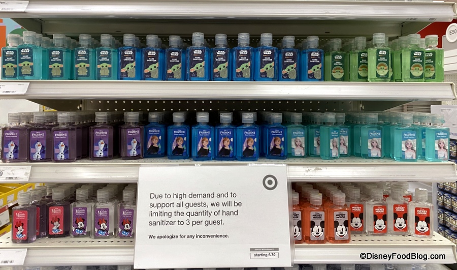 Though YMMV, pretty much any Target I’ve visited recently has limited hand sanitizers to 3 per guest (not just the Disney-themed ones). But we happily noticed that the shelves were stocked with the character crew, so you may have similar luck at your Target if you’re interested in grabbing some on your next Target run!