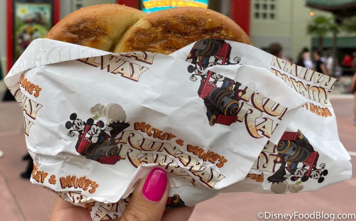 We got a little closer to assess the situation. It was true! The Sweet Cream Cheese Pretzel is at Hollywood Studios! What a sneaky little snack! Never had a Sweet Cream Cheese Pretzel? Let us give you low down.