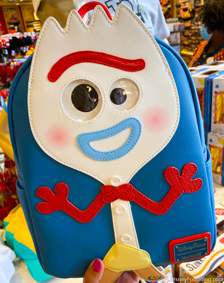 The Forky Loungefly easily caught our eye when we strolled past him in the store. Look at those eyes! And no, they aren’t really working googly eyes. 🙁