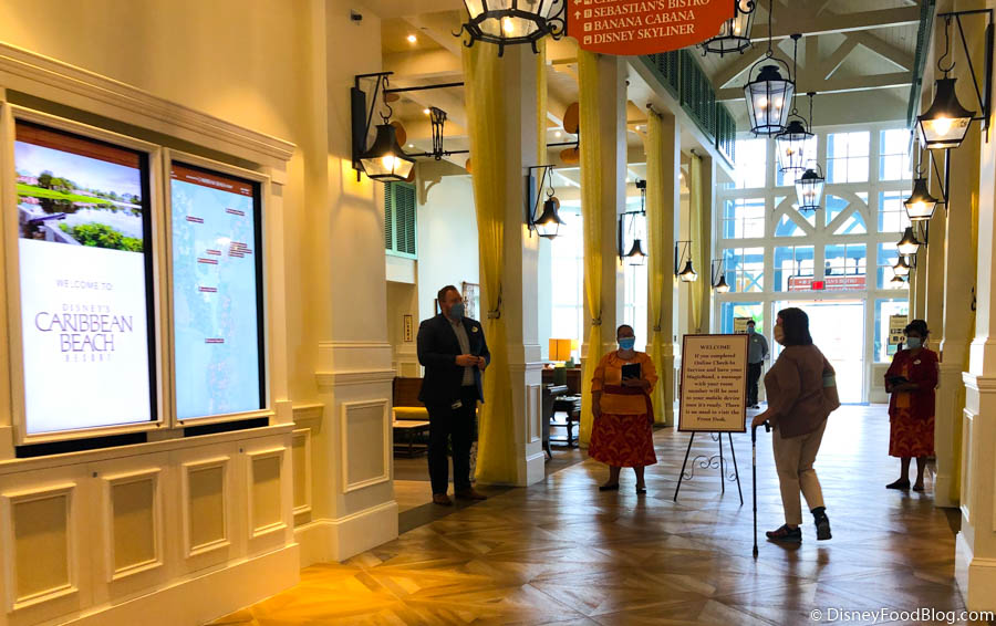 Disney is encouraging Online Check-In for the resort hotels so that guests can skip the front desk. This is available and posted at Disney’s Caribbean Beach Resort.