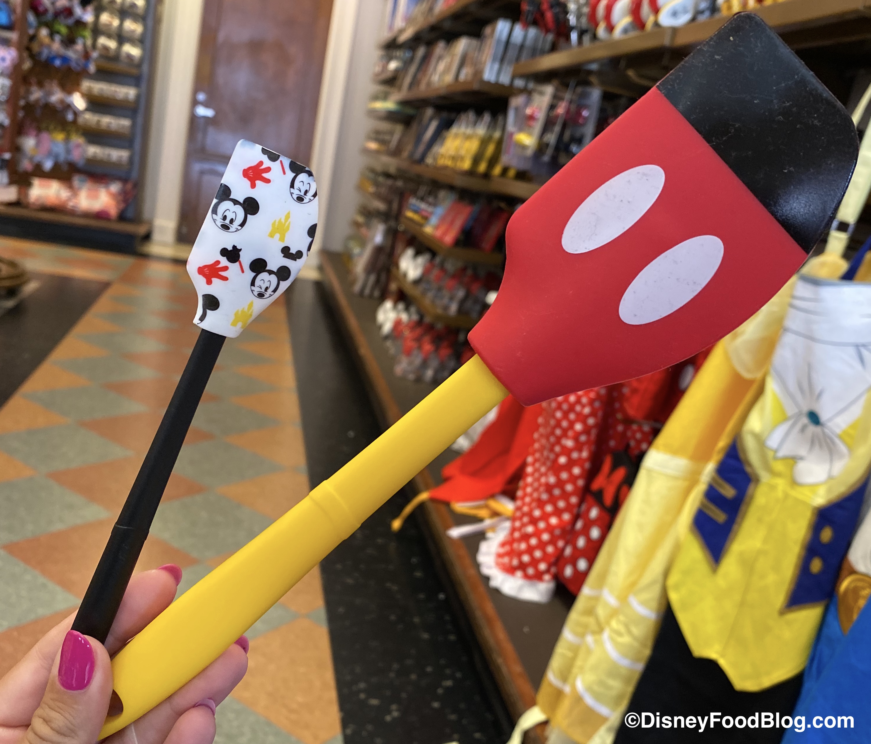 We found some new kitchenware inside Celebrity 5 & 10, where we came across these Mickey and Minnie Spatula Sets! Here’s a look at the Mickey Spatula Set…