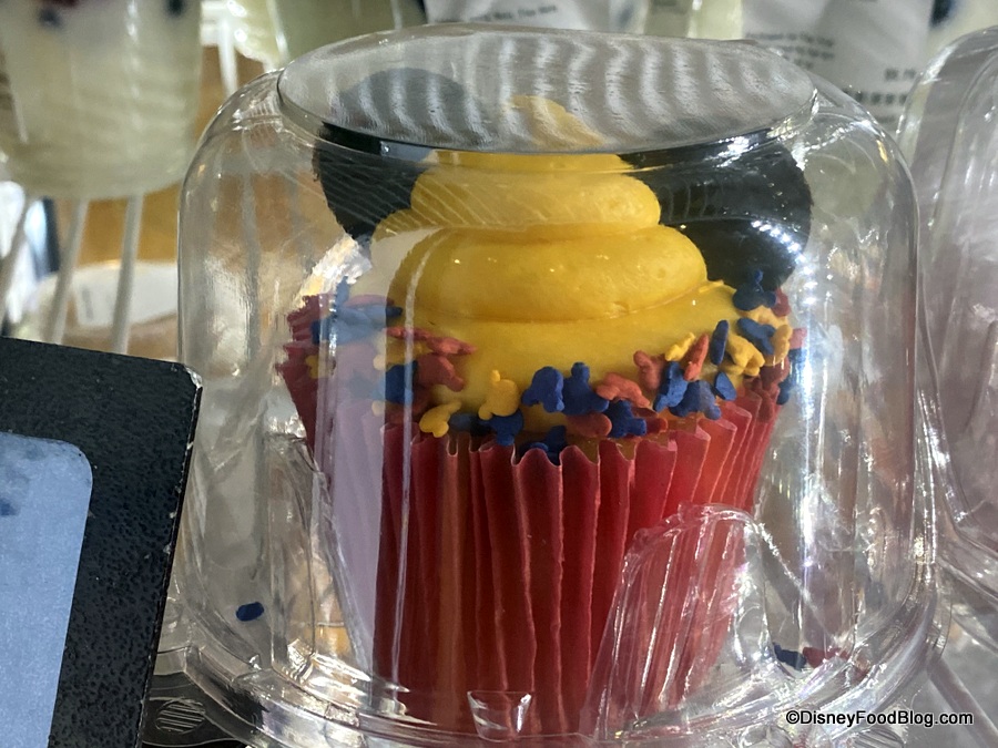 It’s joined by two Mickey Cupcakes — complete with chocolate ears! — which are both vanilla cupcakes with a different presentation. One of them sports bright yellow frosting (perfect for Mickey, right?).