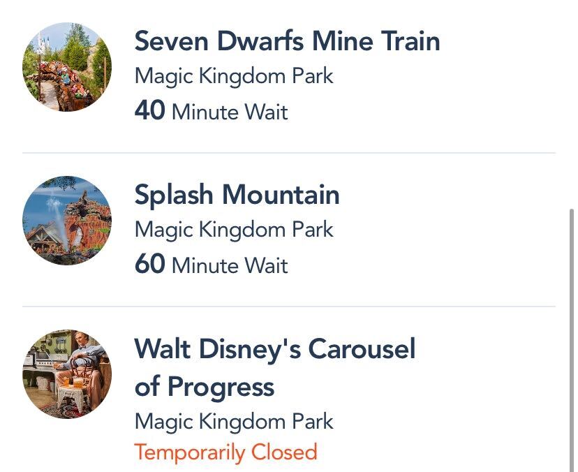 Most rides are OPEN in the parks. Though there are some expected closures, there have also been some UNEXPECTED closures like the Tomorrowland Transit Authority Peoplemover, and now Walt Disney’s Carousel of Progress, too!