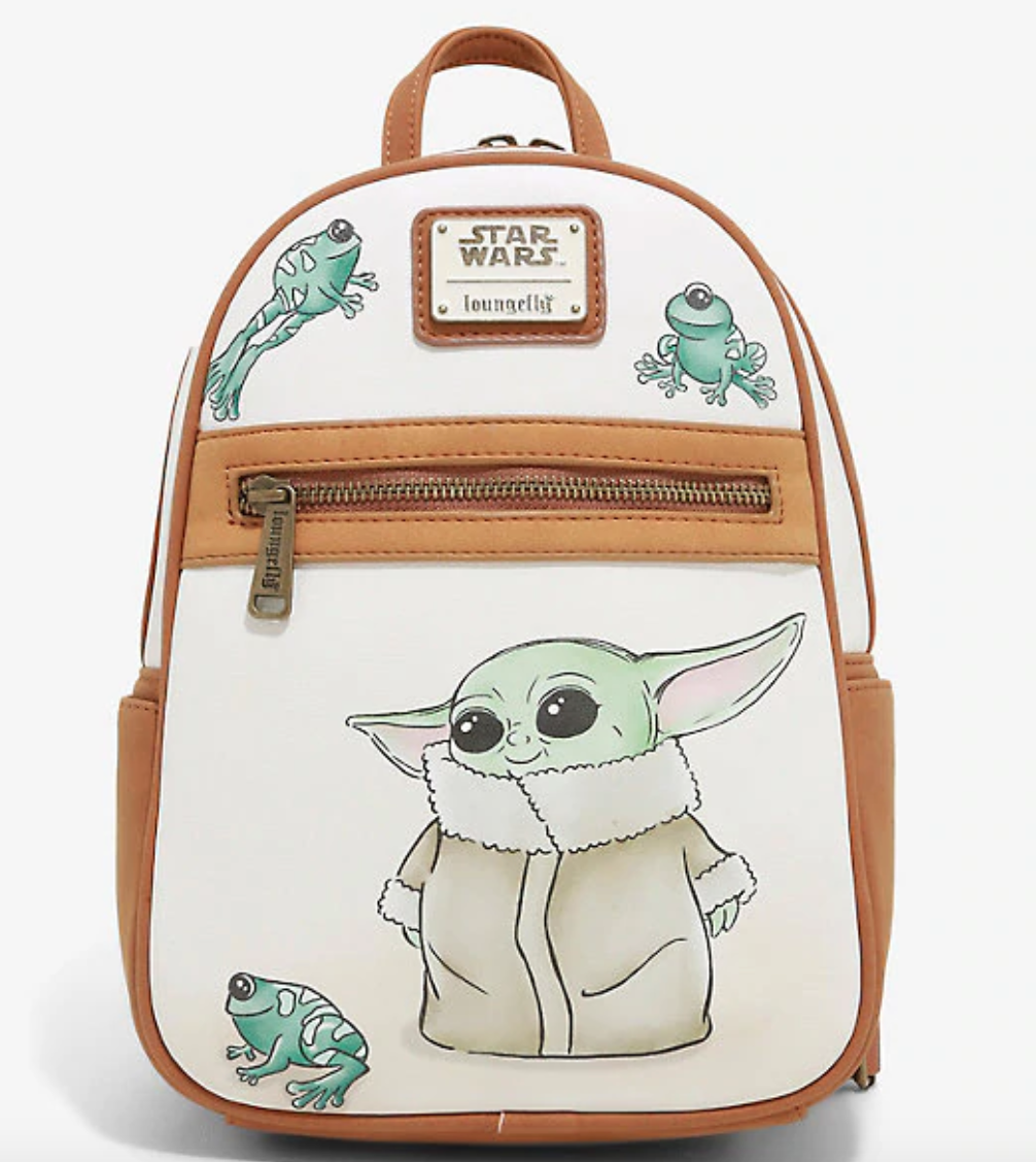 You’ll want to hop on this one right away if you’re a fan of the cartoonier Baby Yoda stuff. But we think the tan faux leather trim gives this back-to-the-parks bag a rather sophisticated look!