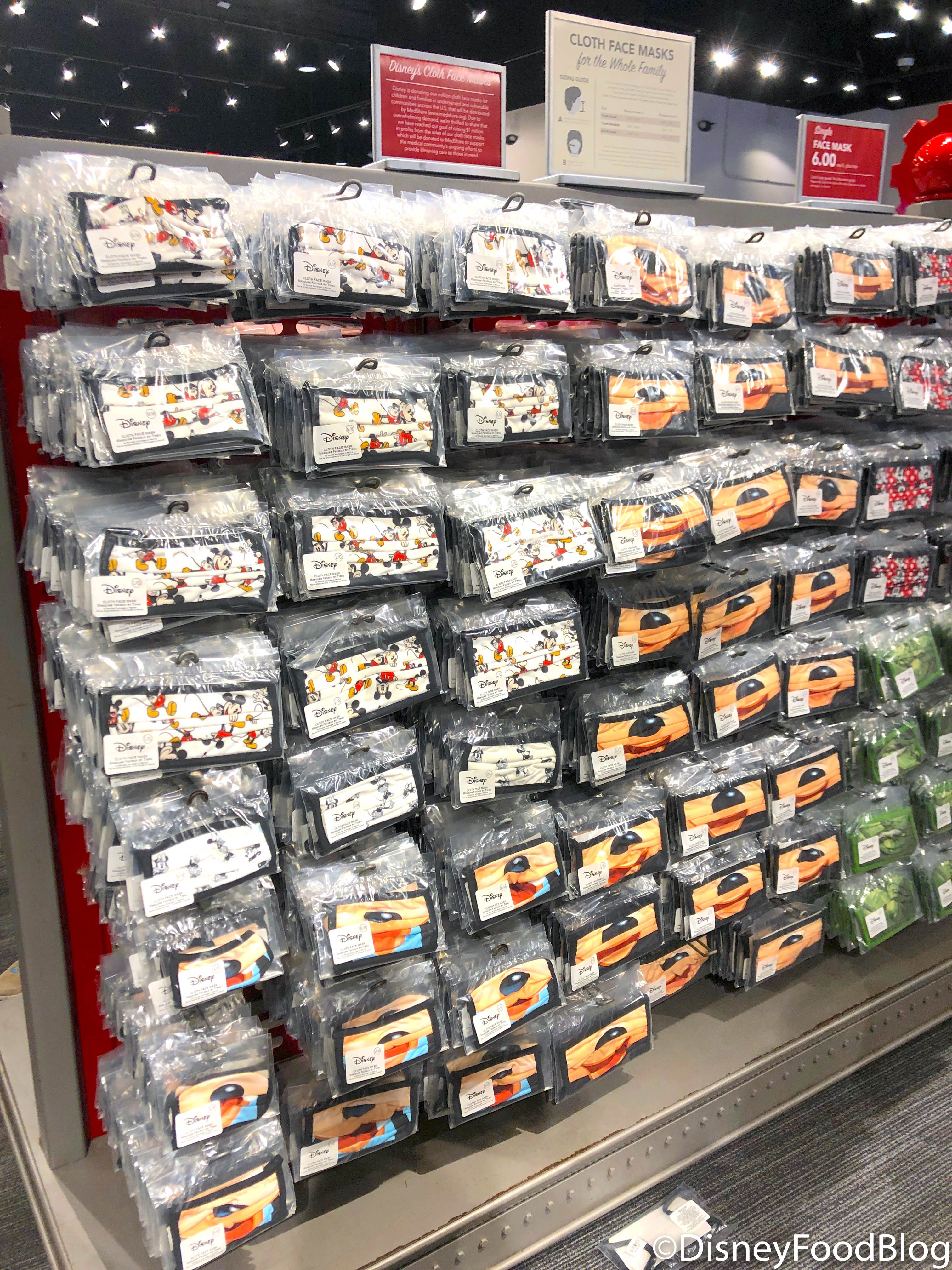 But, while we were in MouseGear at EPCOT today, we spotted the extra large face masks in person for the first time! While the Mickey Face Mask is the only design that we saw available in the store as the extra large size, we hope to see some of the other character masks we’ve seen online released in the bigger size soon too.