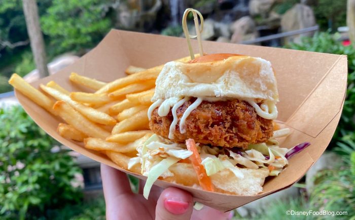 It was very similar to the Menchi Katsu Slider we tried at the 2020 EPCOT Flower and Garden Festival! Now we love a deep-fried burger, but while the slider from Katsura Grill was definitely tasty, it was the least memorable of the dishes we sampled. You can munch on this treat for $9.50.