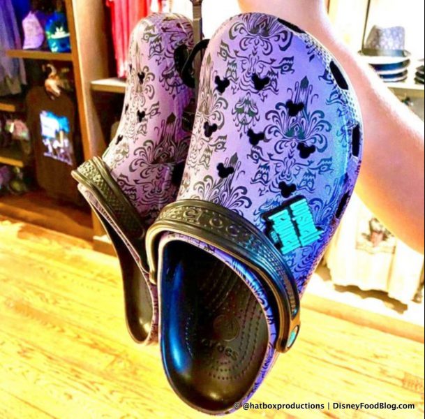 Today, thanks to our Instagram follower @hatboxproductions, we got a peek at some Haunted Mansion Crocs!! These beauties feature the classic purple Haunted Mansion wallpaper design all over them, with a Haunted Mansion logo popping out on the sides!