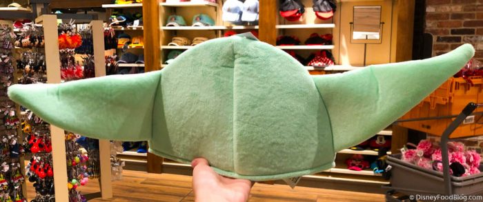 Or, you could leave the Mickey ears behind to put on the Baby Yoda Ear Hat instead! The green hat is basically one of the cutest things we’ve ever seen with Baby Yoda’s big eyes, giant ears, and little smile.