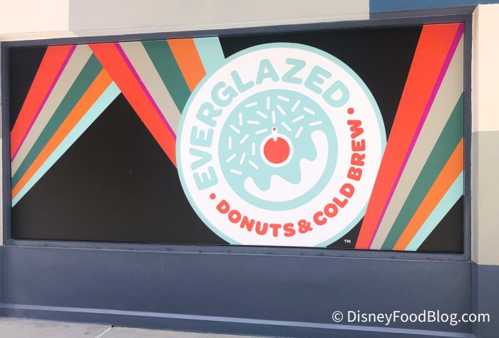 We can’t resist grabbing some coffee and morning treats before our walk through Disney Springs, so Everglazed Donuts & Cold Brew is going to be a must-visit spot when the coffee shop opens! While there have been construction barriers around the area before, we were able to see some of the Everglazed signs up finally.