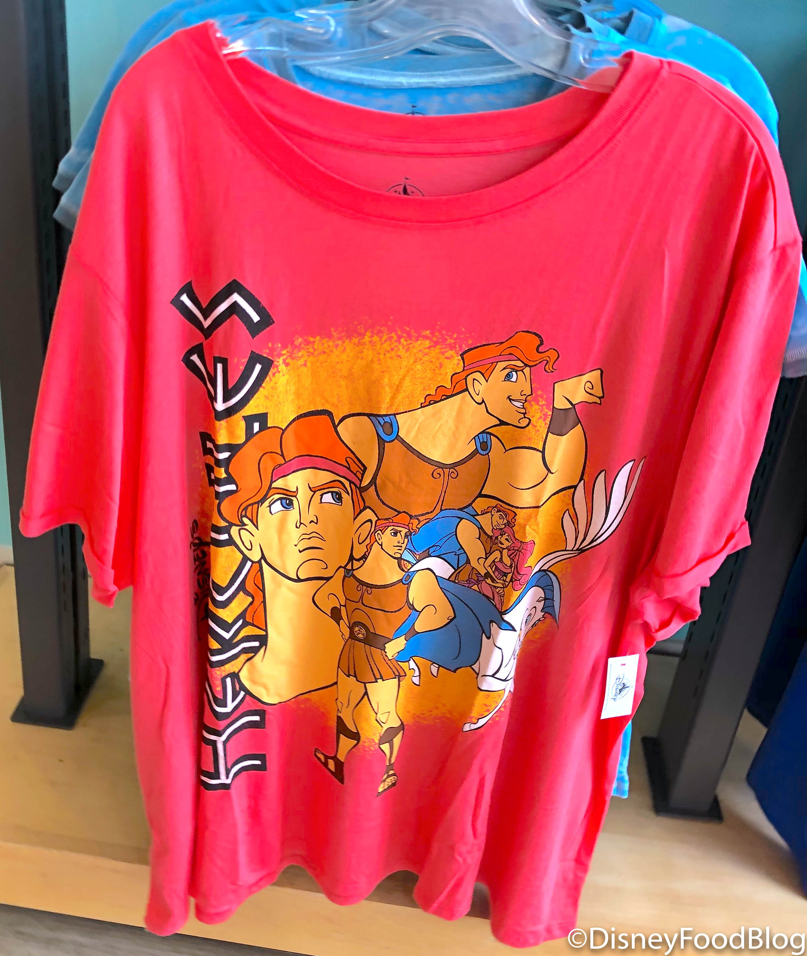 The red shirt has different images of Hercules looking like a hunk alongside his best pal Pegasus and lady love Meg for $36.99!
