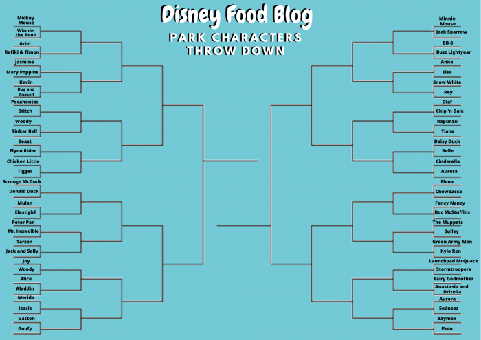 If you’re as ready as we are to kick things off, you can click on the official DFB Park Characters Throw Down Bracket above to get your own printable! Then, make sure to visit our Instagram page to vote in the polls in our live instagram stories starting tonight. We’re already on the edge of our seats to see who you all choose. (We’re rooting for you, Peter Pan!!)